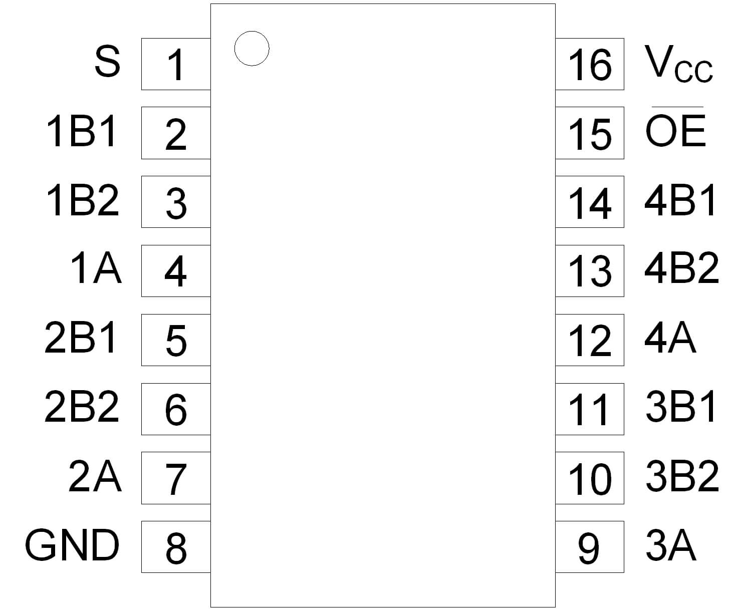 | AiP74CBTLV3257 | 4路2選1 (帶使能) | 2.3V~3.6V | -40℃~125℃ | SOP16 SSOP16 TSSOP16 DHVQFN16 |