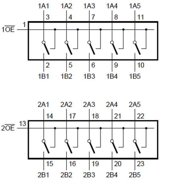 | AiP74CB3Q3384 | 2路5通道 (帶使能) | 2.3V~3.6V | -40℃~125℃ | SOP24 TSSOP24 DHVQFN24 |