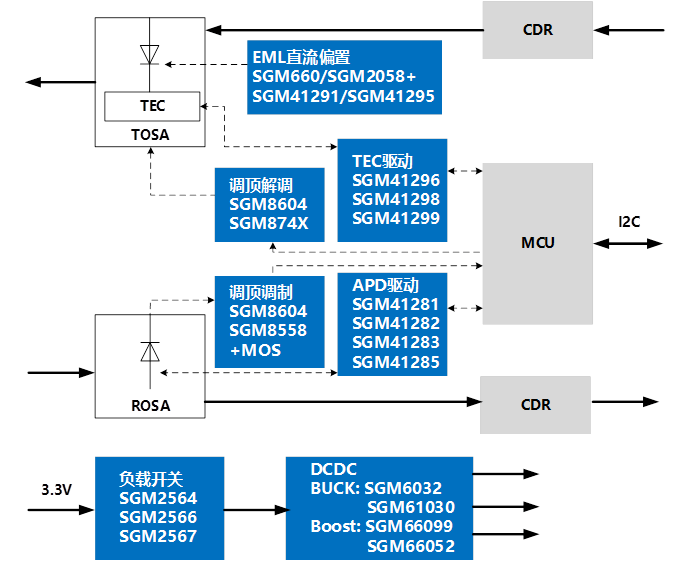 圣邦微針對光模塊,小基站等通信設(shè)備新推出一系列產(chǎn)品,涵蓋TEC\EML\APD驅(qū)動,小封裝DCDC,負(fù)載開關(guān),電壓監(jiān)控,I2C電平轉(zhuǎn)換,及信號鏈高速/高精運(yùn)放,高速比較器等,全面助力光模塊設(shè)計(jì)。