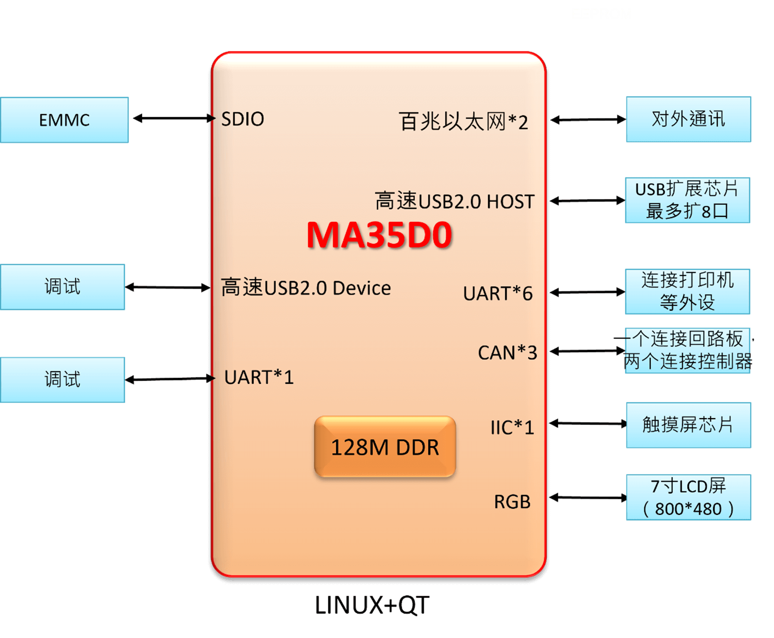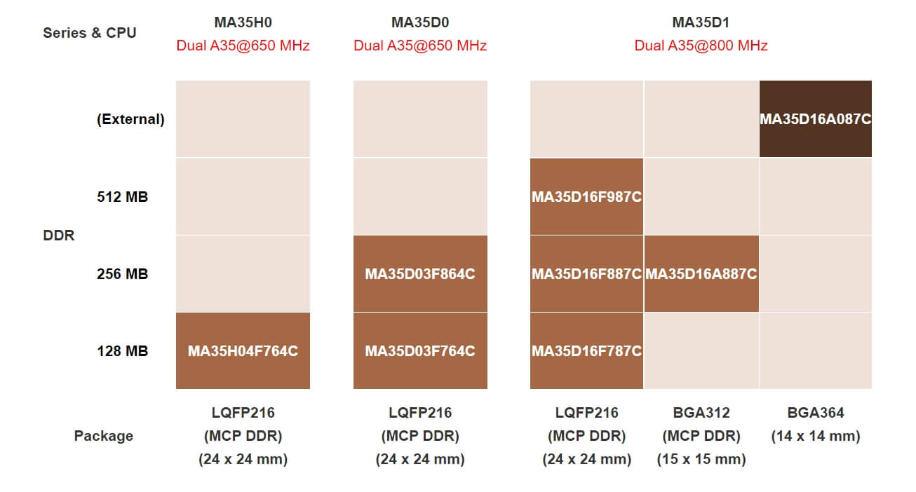 MA35D1支持更高的性能,內(nèi)嵌DDR內(nèi)存最高可達512MB,支持BGA封裝,更多PIN腳,更小封裝。