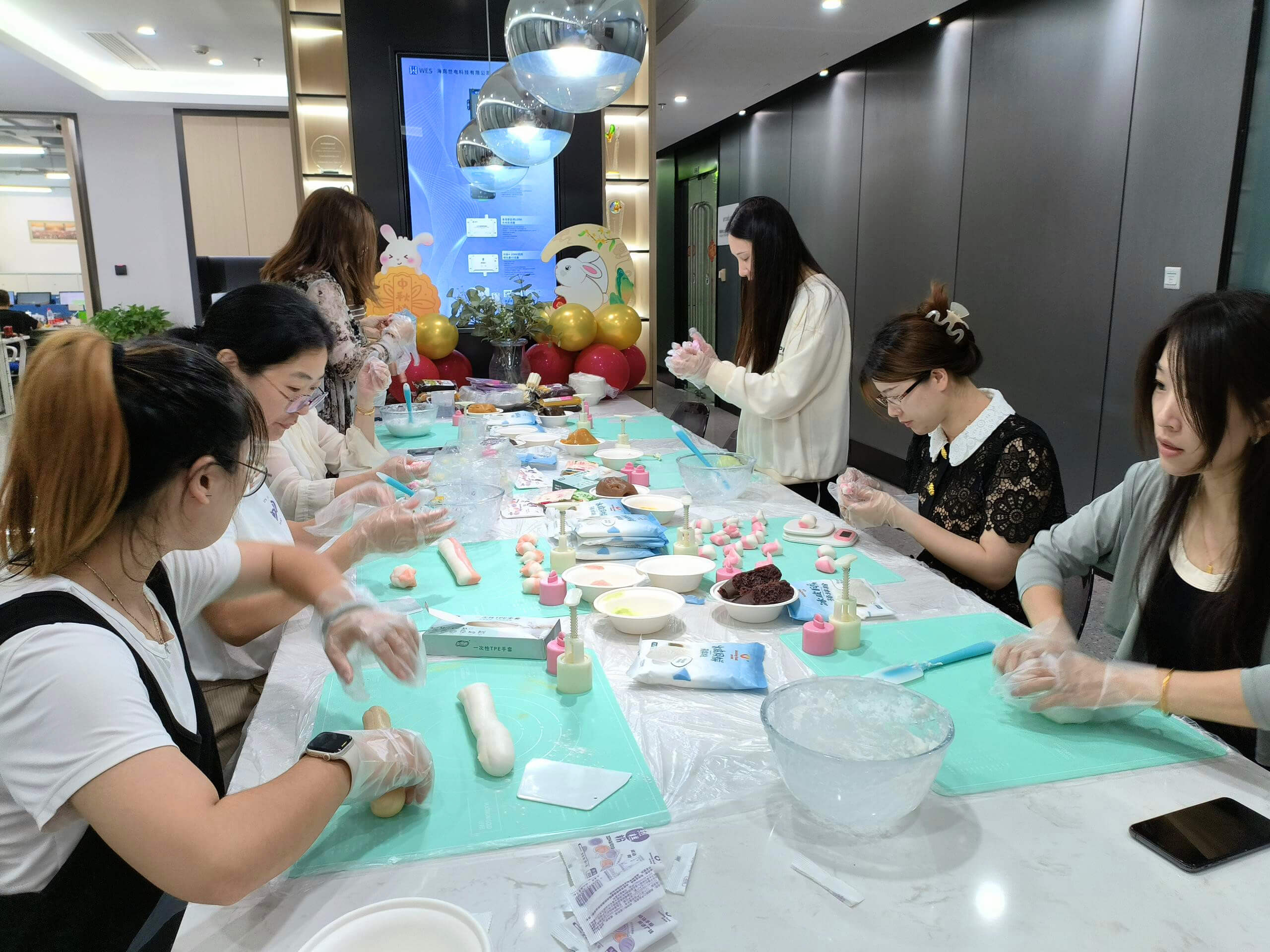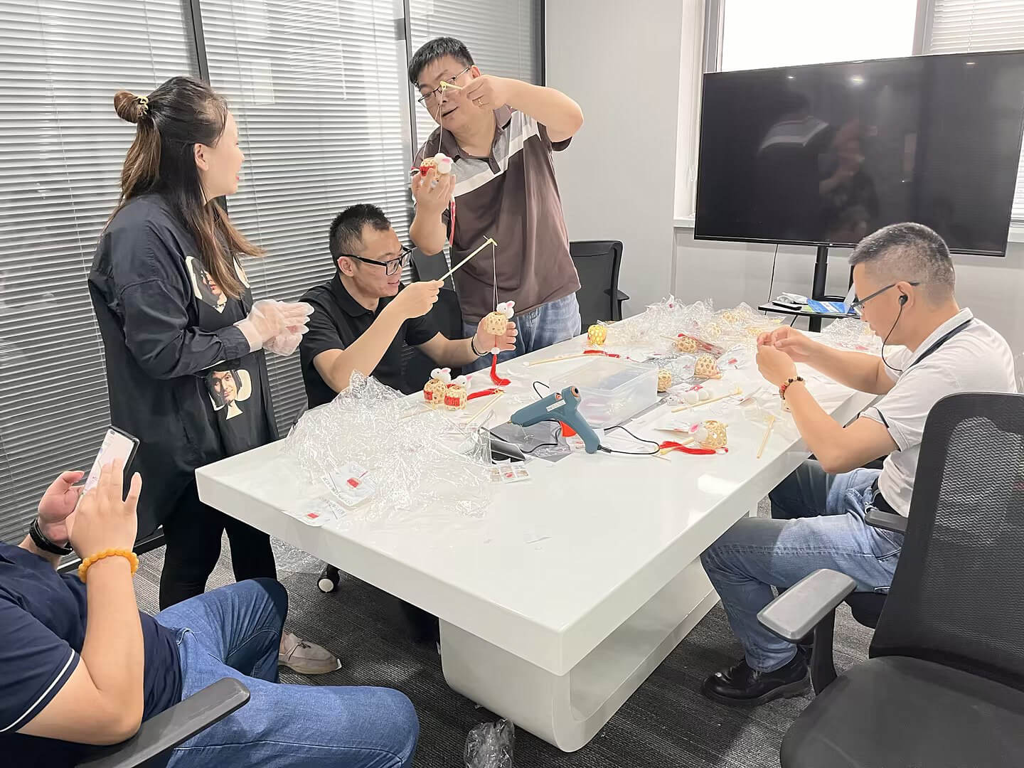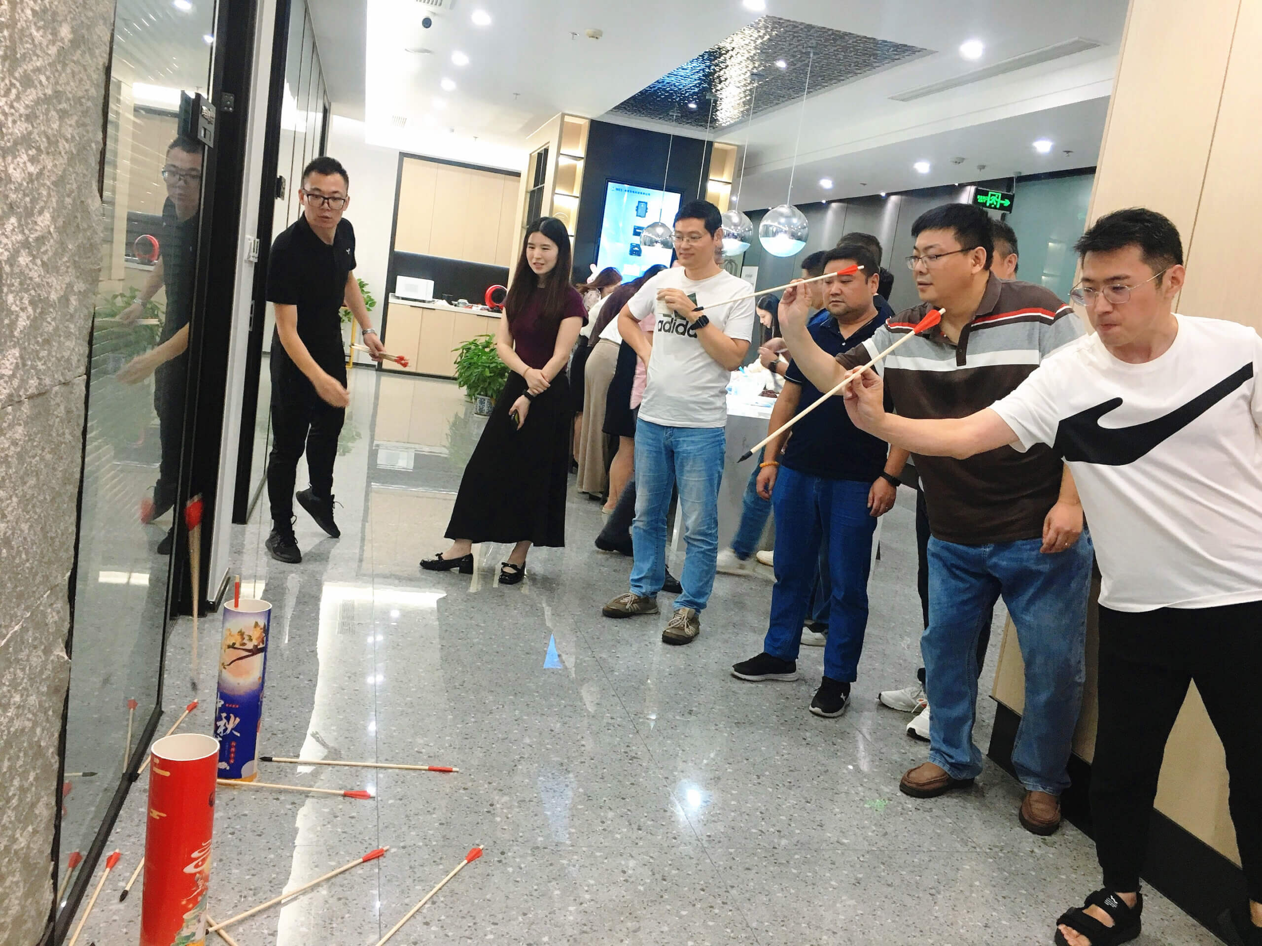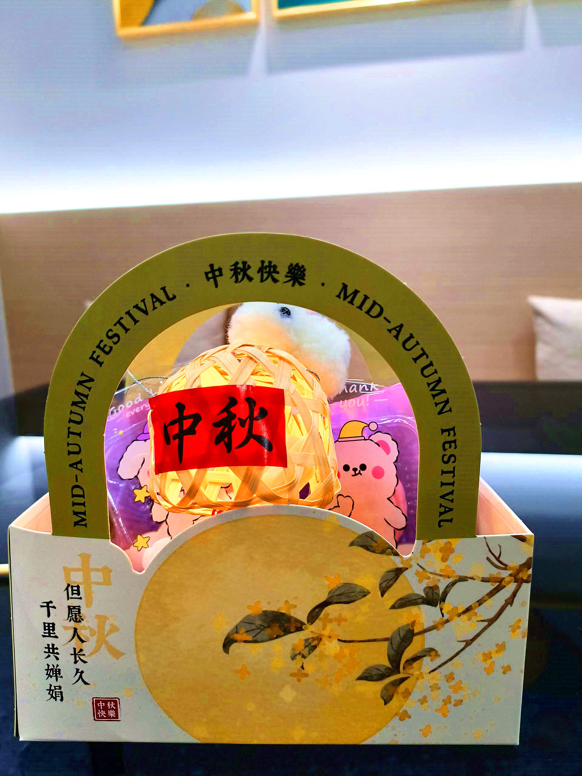 ?? 為慶祝中秋和國慶雙節(jié),行政人事部精心布置了會(huì)議室做為本次活動(dòng)的主場(chǎng)館,長長的會(huì)議桌上放滿了月餅、美食、水果和飲料……營造出濃濃的節(jié)日氣氛。同時(shí),在前臺(tái)大廳區(qū)域組織了“投壺?fù)Q年假”、“組裝小燈籠”、“親手做月餅”等系列趣味性活動(dòng)。