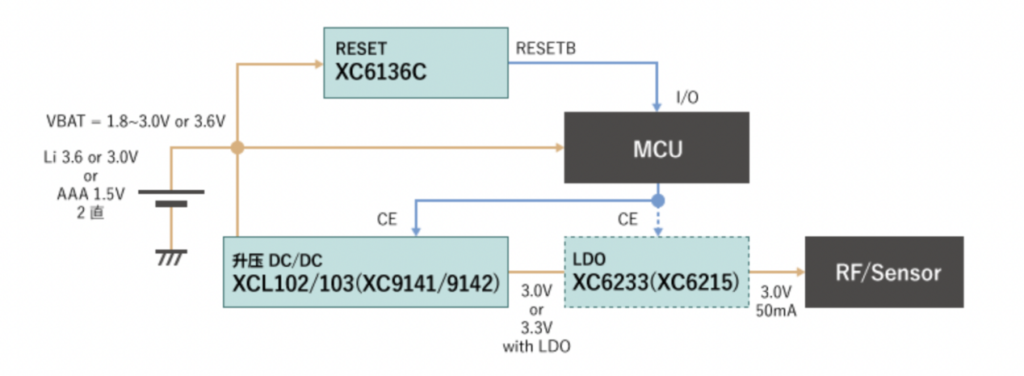電路框圖(a)是可將MCU直接連接到電池的情況。簡單的IoT/安保/可穿戴/醫(yī)療的小型器件多為這種結(jié)構(gòu)。