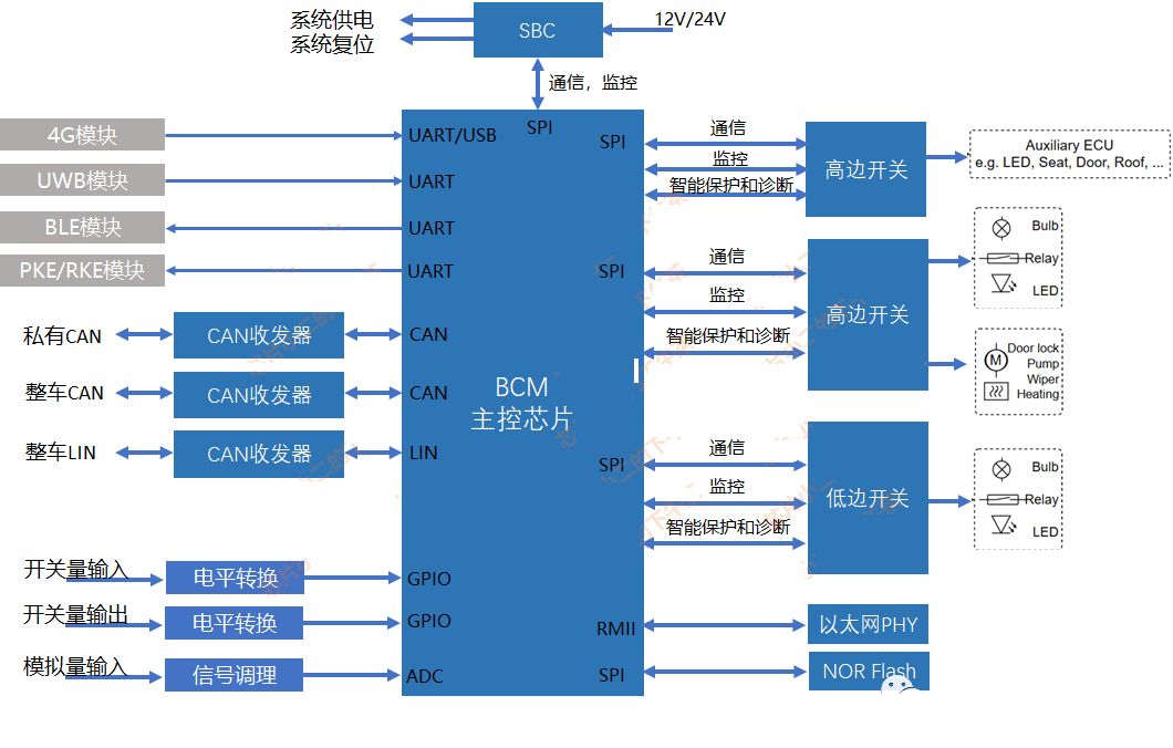 - ?功能集成?:整合傳統(tǒng)分散的ECU(如燈光控制、雨刮控制、門鎖系統(tǒng)等),統(tǒng)一管理信號(hào)輸入與輸出,減少系統(tǒng)復(fù)雜度。??2??3